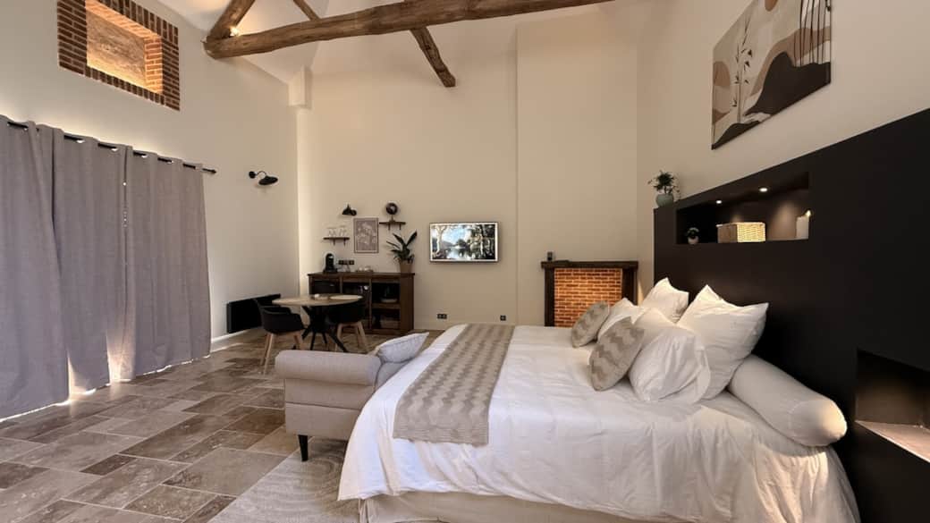 Parenthèse hors du temps en Sarthe. Gîte haut de gamme au cœur de la nature, avec terrasse privative sans vis-à-vis et jacuzzi privatif en accès illimité. Suite élégante avec lit king size, linge de qualité hôtelière et éclairages doux. Espace de vie chaleureux, décoration naturelle, salle d’eau avec douche à l’italienne. Prestations incluses : Petit déjeuner, linge, café/thé, Wi-Fi, parking, TV. Idéal pour un séjour détente ou romantique. À 40 min du Mans, 2h de Paris et d’Angers.